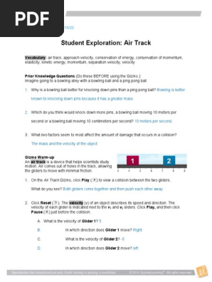 . Altitude affects phase change because the higher up you are the lower boiling point temp you will have. Explore Learning Student Exploration Air Track Answer Key PDF Download. Air Track Adjust the mass and velocity of two gliders on a frictionless air track.It will categorically squander the time. Air Track Answer Key Vocabulary. Especially for the air track one.